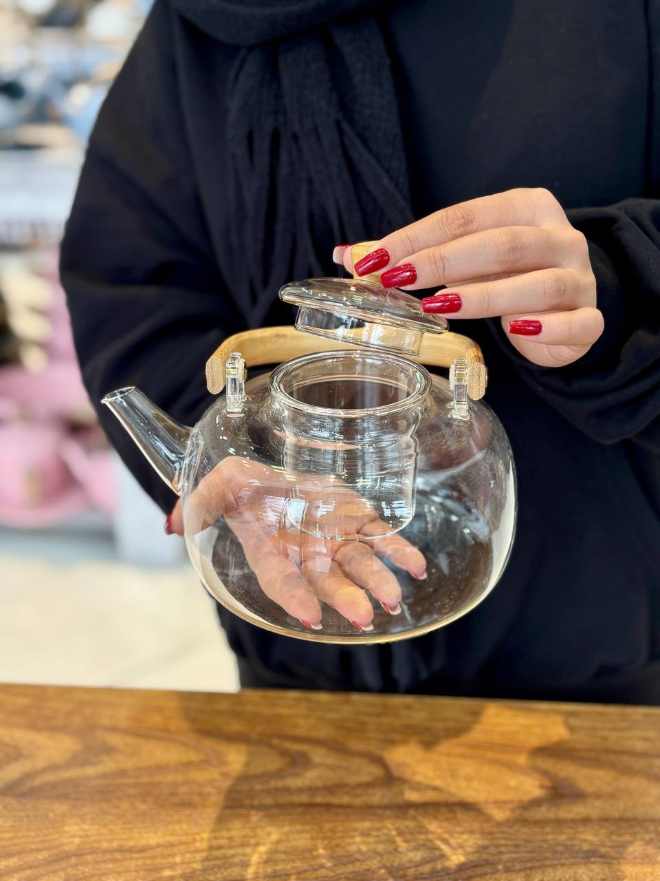 کتری پیرکس دسته بامبو وارداتی