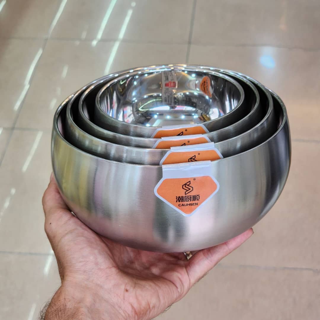 کاسه استیل اونم دوجداره که باعث میشه ظرف استیل داغ نشه 👌☺️ کاسه های دوجداره استیل 304 وارداتی قطر ۱۲ ، ۱۴ ، ۱۶ ، ۱۸ سانت