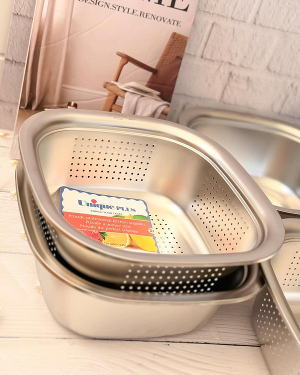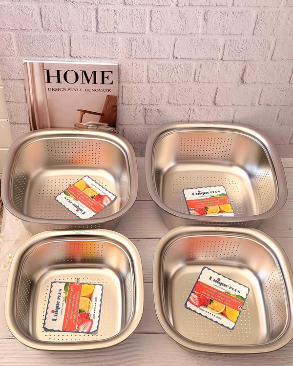 آبکش و لگن استیل مربع 4 تکه 🎉🎉
