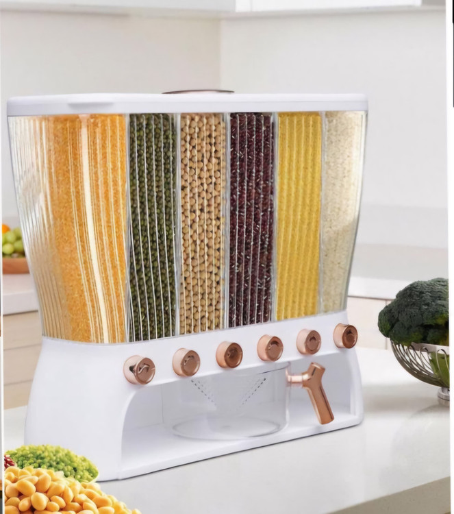 جا حبوباتی مستطیل جنس اکرولیک ۶ خانه دارد هر خانه یک تا یک و نیم حبوبات جا میگیرد
