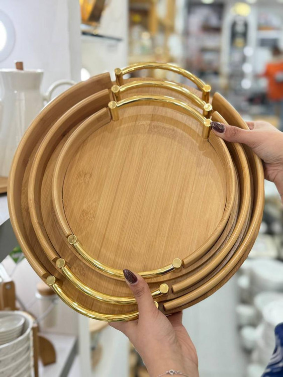 سینی گرد دسته طلایی