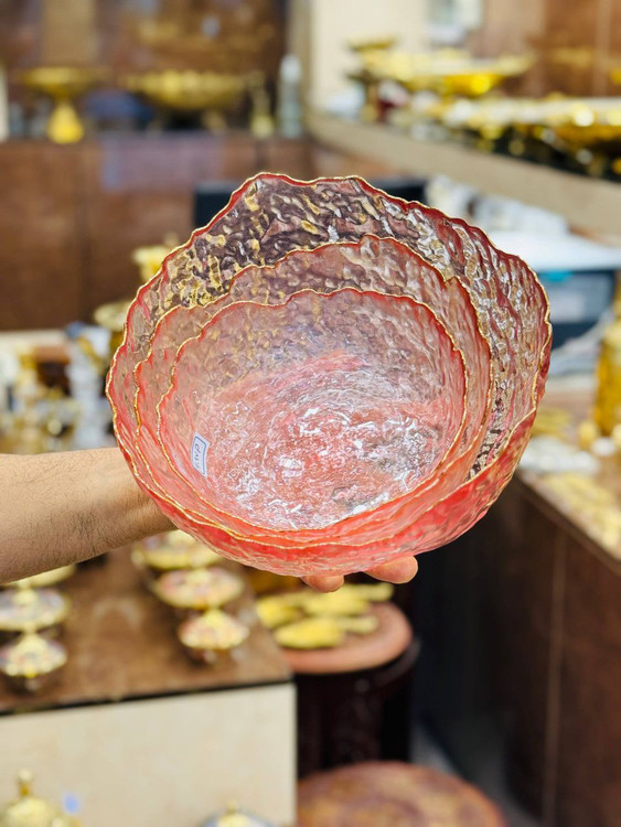 کاسه 3 تایی دفرمه ساده لب طلایی GLASS BOWL