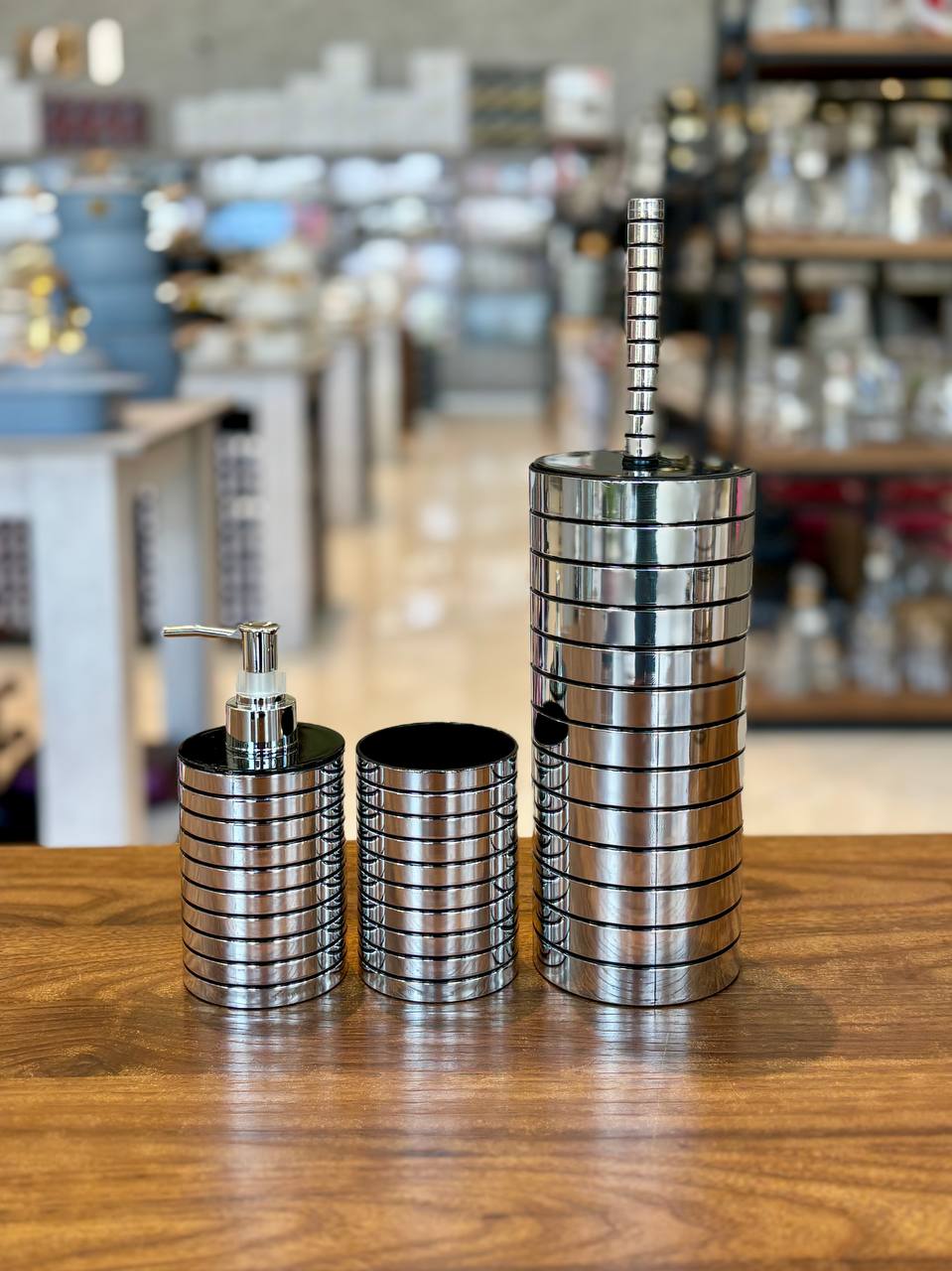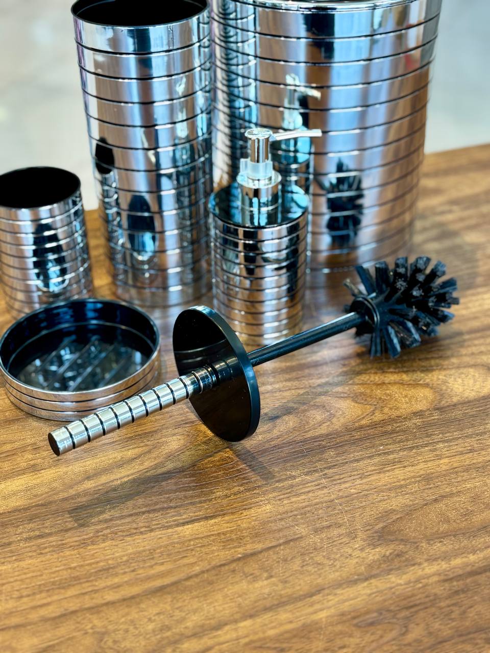شامل ست 5 تکه ای (ظرف مایع دستشویی،جاصابونی،جامسواکی،فرچه(برس)توالت، سطل آشغال)