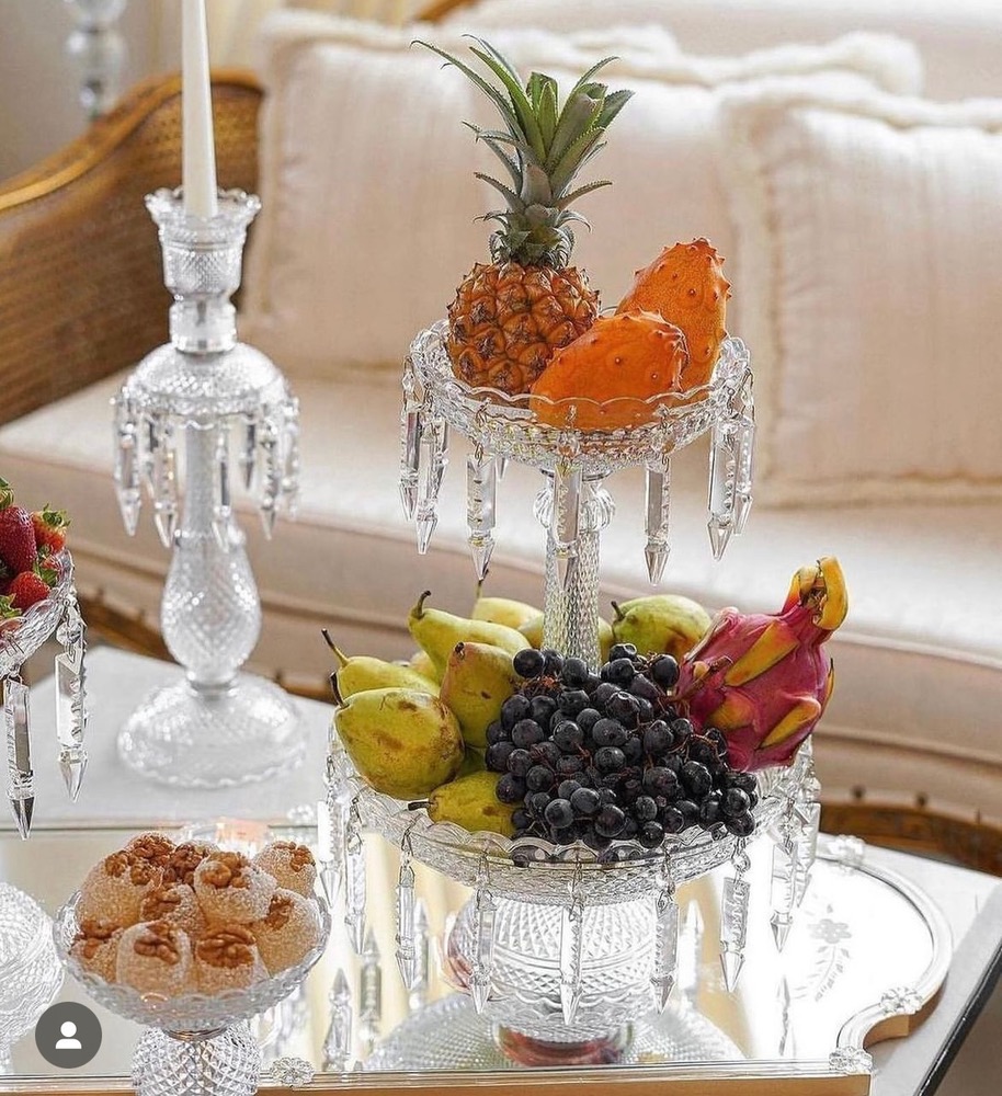 بازه زمانی ارسال کالا ۱ تا ۵ روزه کاری می باشد سرویس بلور اویر لاکچری شامل میوه خوری دو طبقه شیرینی خوری واجیل خوری نقل خوری و شکلات خوری گلدان شمعدان