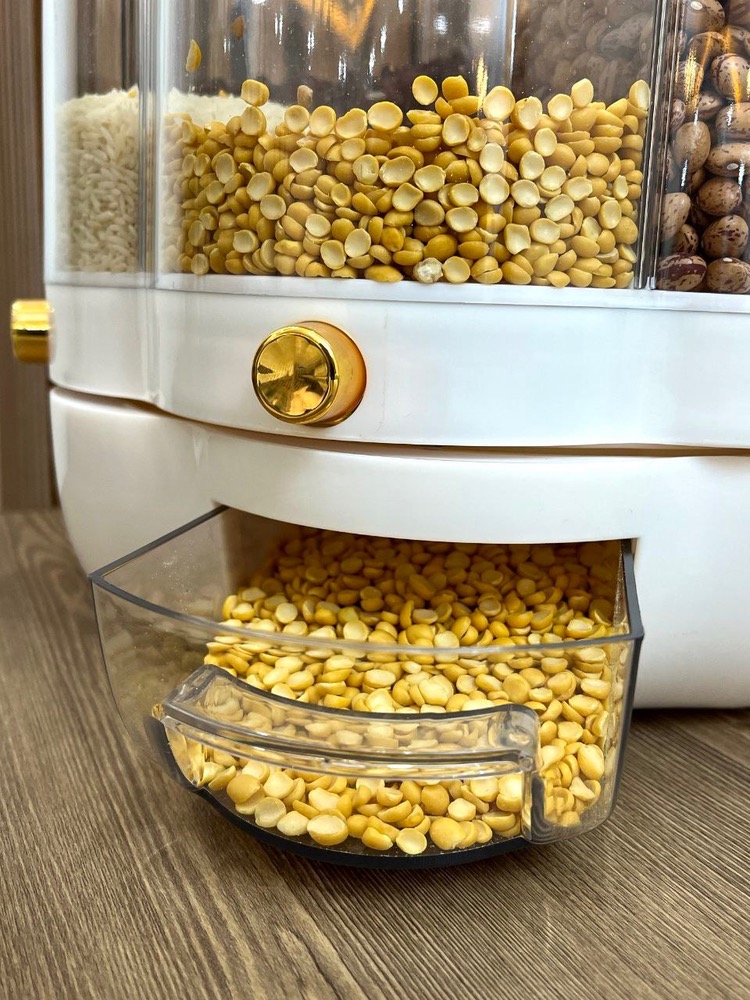 این محصول دارای 6 محفظه است و هر محفظه 1.5 کیلو و سایز کوچک 1 کیلو حبوبات جا میگیرد.