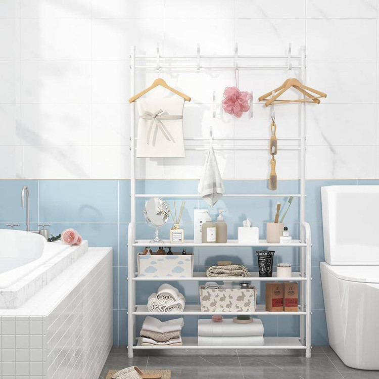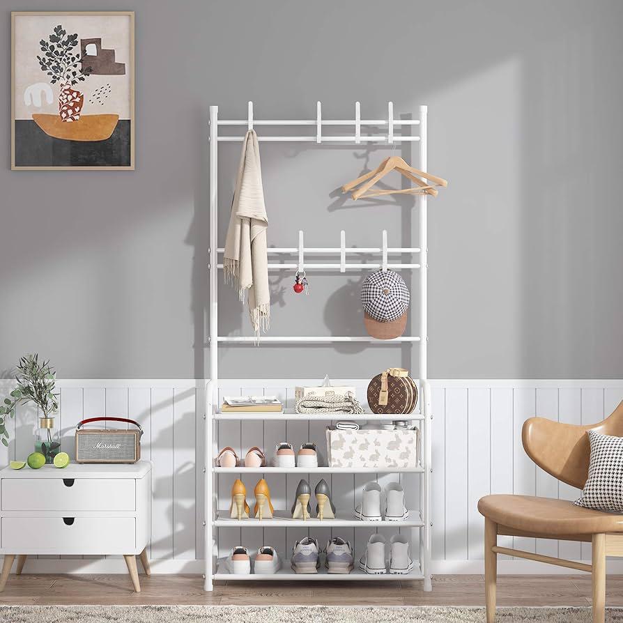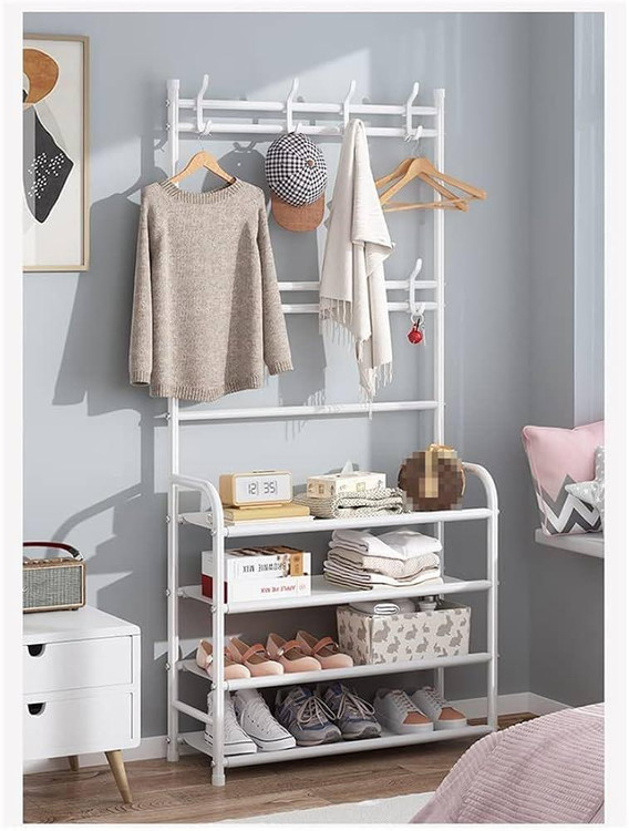 این قفسه زمینی ترکیبی از چوب لباسی و رخت آویز با جاکفشی است که فضای کافی برای کت، لباس، کیف و کفش فراهم می کند. ساخته شده از مواد با کیفیت بالا، ظرفیت باربری قوی و پوشش مقاوم در برابر زنگ زدگی را ارائه می دهد و دوام را در داخل و خارج از خانه تضمین می کند. طراحی صرفه جویی در فضا آن را برای آپارتمان ها، خوابگاه ها یا فضاهای زندگی کوچکتر ایده آل می کند.